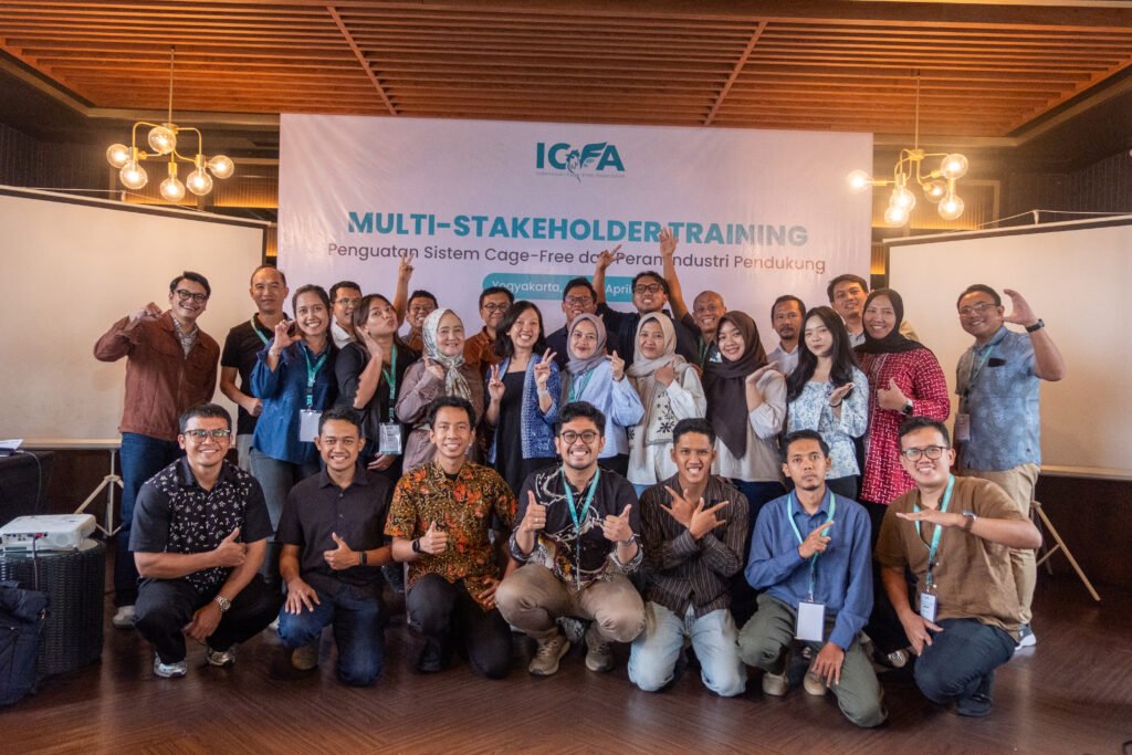 Yogyakarta, 8-9 April 2026 — Indonesian Cage-Free Association (ICFA) menyelenggarakan kegiatan Multi-Stakeholder Training: Penguatan Sistem Cage-Free dan Peran Industri Pendukung pada 8–9 April 2026 di Yogyakarta. Kegiatan ini dihadiri oleh 23 peserta yang merupakan perwakilan dari berbagai sektor industri pendukung, termasuk pakan, obat dan kesehatan unggas, pullet & breeding, serta sarana dan peralatan kandang. Pelatihan ini dirancang sebagai ruang kolaboratif lintas sektor untuk memperkuat pemahaman mengenai sistem produksi telur cage-free, sekaligus mendorong peran aktif industri pendukung dalam menciptakan ekosistem yang lebih siap, terintegrasi, dan berkelanjutan di Indonesia.